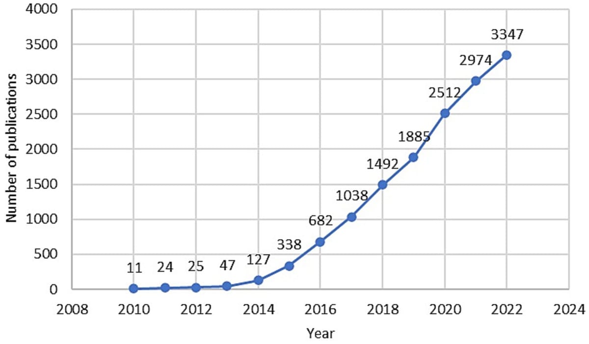 Below - Temporal trends of publications that have CRISPR in the title. The clinical landscape for CRISPR-Cas systems has rapidly expanded.